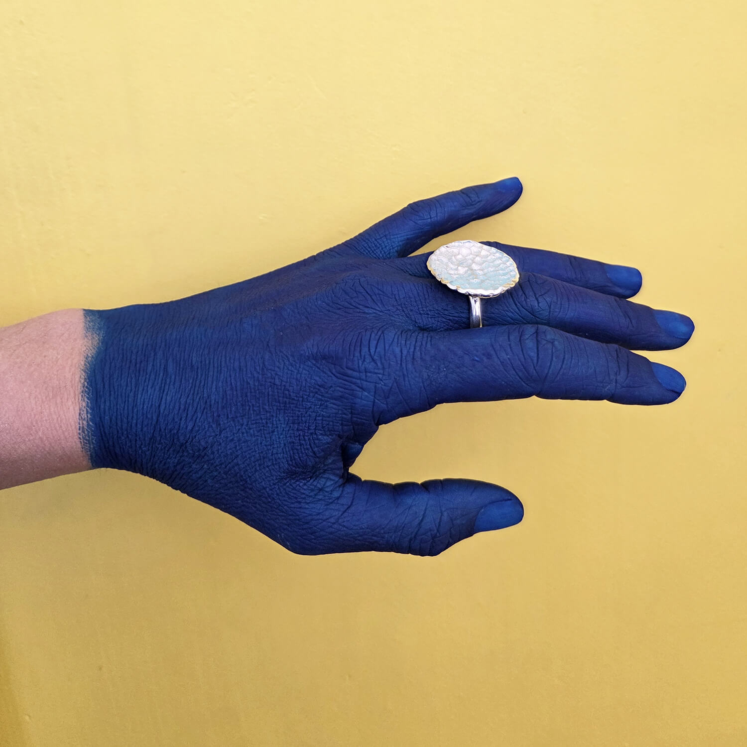Le dessus de la bague est texturé pour un effet original, et mesure 3.2 x 2.5 cm.