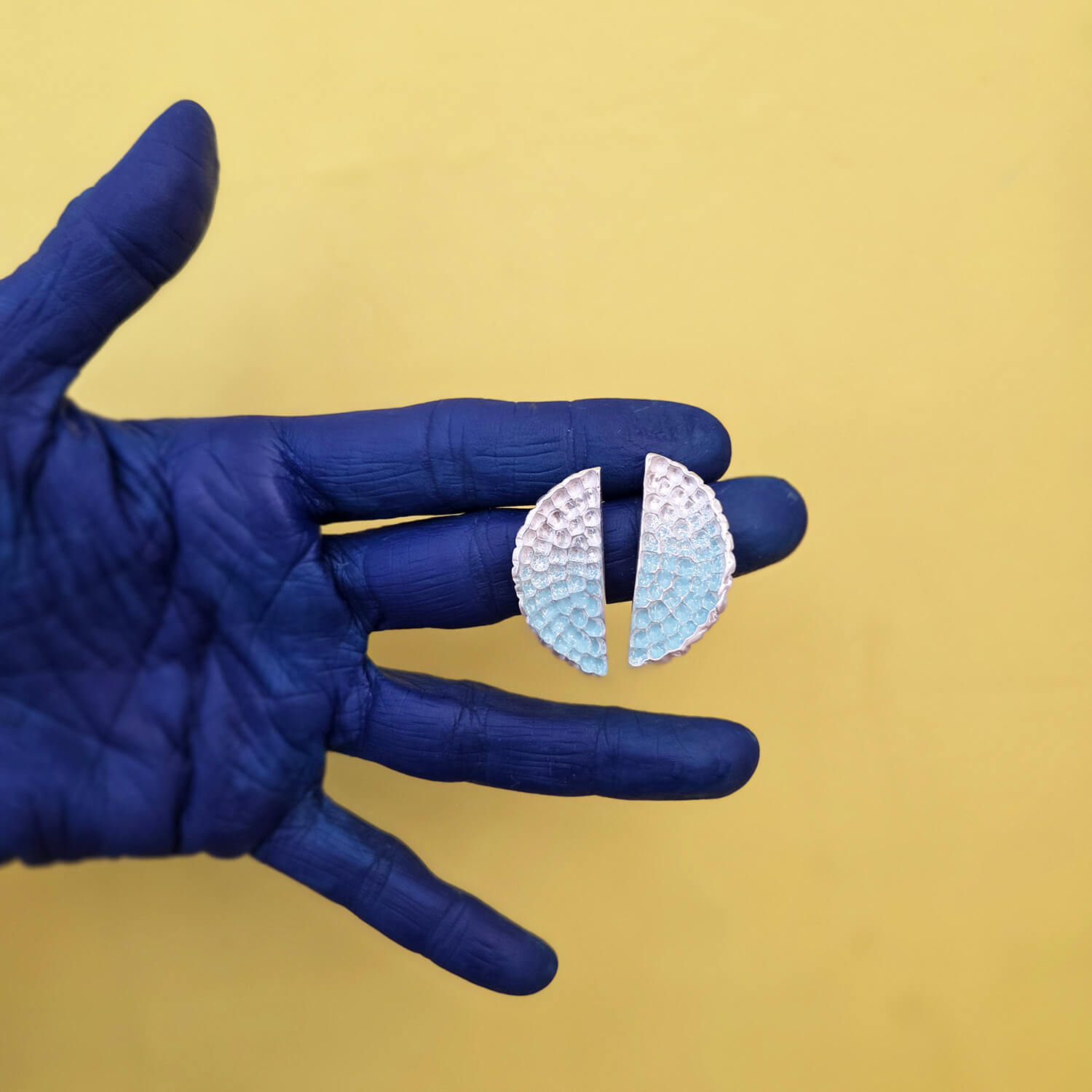 Grandes puces en argent massif émaillé à froid en bleu turquoise, Texture graine, Soleil bleu
